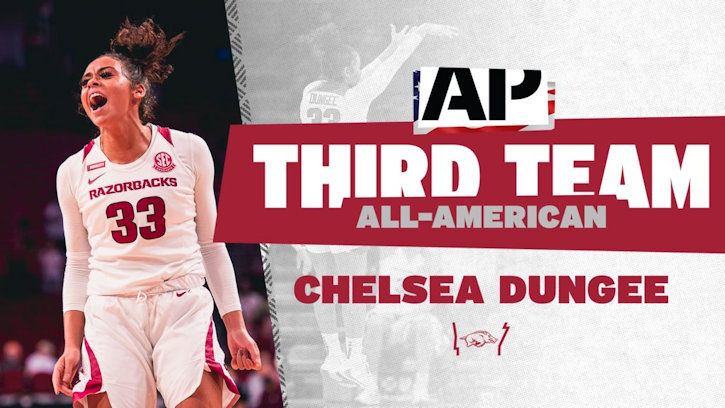 FAYETTEVILLE, Ark. – Redshirt senior guard Chelsea Dungee (Cherokee Nation) was named an All-American, announced today by the Associated Press. It is the first All-American nod for Dungee, who was voted to the Third Team, and the first AP All-American recognition for Arkansas Women’s Basketball since Shameka Christon was named to the Third Team back in 2004.
