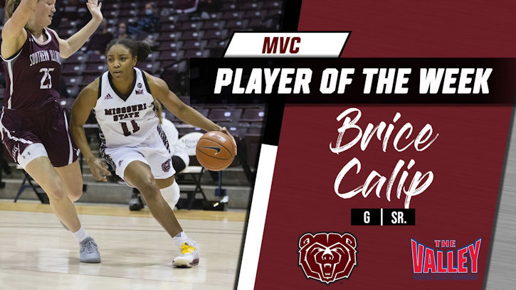 St. LOUIS – Missouri State’s Brice Calip tied a Missouri Valley Conference record by winning her third consecutive women’s basketball Player of the Week award, the league announced Monday.