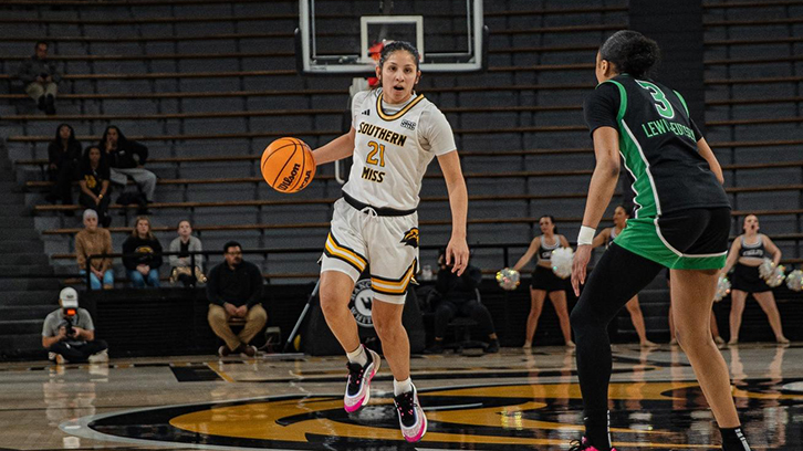 With the paint defended, Georgia Southern kicked the ball out to Cleaveland who pulled up from the arc for her first basket of the game. She was 0-of-3 at that point in the night. Southern Miss was unable to score on its final possession, letting Georgia Southern hold on for their 16th win of the year.