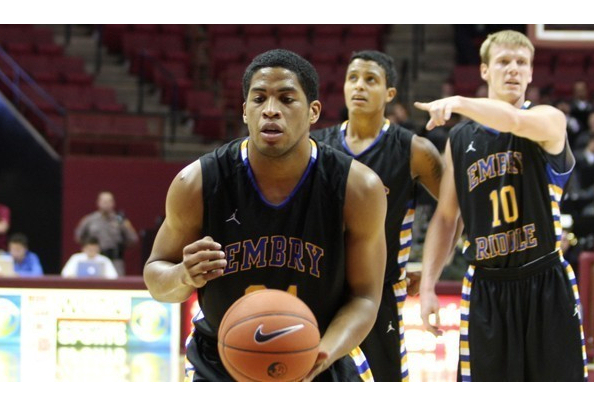 After Tariq Martin scored the first basket of the game, ERAU scored 14 consecutive points to quickly establish a 14-2 lead in the game’s opening minutes. Jason Powell drilled a three to build the Eagle lead up to 17 points (21-4) with 10:50 left in the first half.