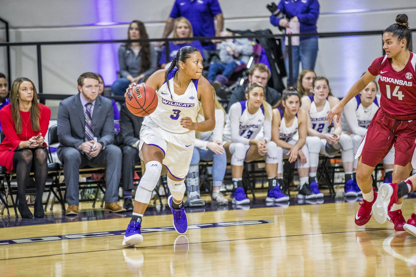 ACU led by as many as nine points in the first half, but found itself down 28-25 in the closing seconds as the Huskies were putting the finishing touches on an 18-6 run. Williamson, however, was sent to the free throw line on the Wildcats’ final possession and her two clutch buckets made it a one-point game at halftime.