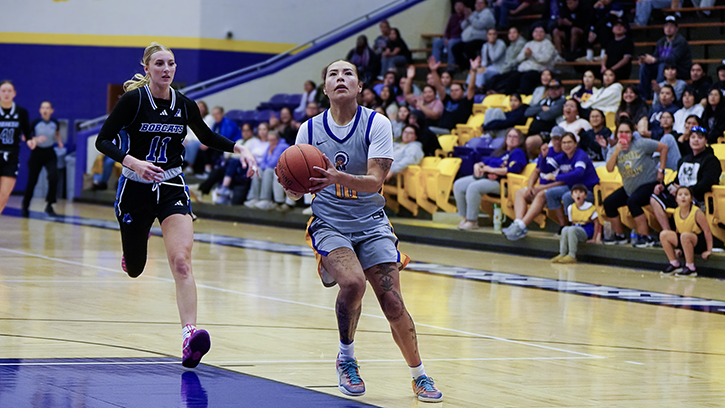 LAWRENCE, KS – The Haskell Indian Nations University (HINU) women’s basketball team overcame a double-digit deficit and a sloppy first half to mount a massive fourth-quarter comeback, defeating the Peru State Bobcats 74-69 in a game that came down to the final minute.