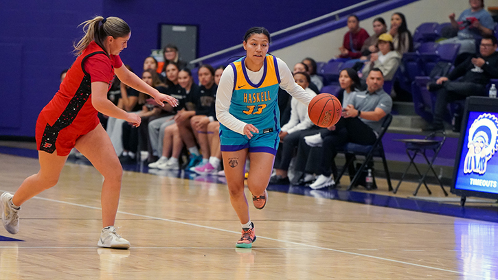 LAWRENCE, Kan. — Haskell Indian Nations University delivered a dominant wire-to-wire performance, rolling past Hesston College 89–46 behind relentless defense, balanced scoring, and efficient ball movement.