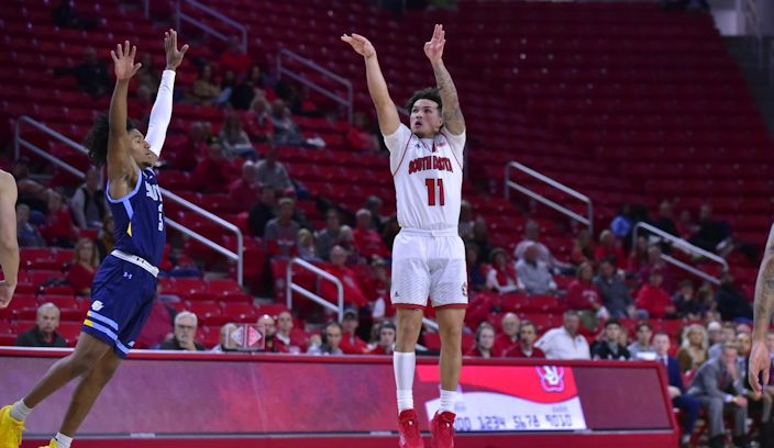 Erik Oliver scored 11 points off South Dakota’s bench and Tasos Kamateros added 10. Mason Archambault (Standing Rock Sioux) finished with nine points and seven boards, and made some crucial plays down the stretch.