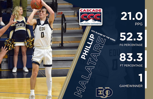 Malatare had a solid week in three starts as he helped lead Eastern Oregon to a 2-1 record inside Quinn Coliseum, which included a 93-91 overtime upset of then No. 13 College of Idaho. He played 96 total minutes over the course of the three-game span.