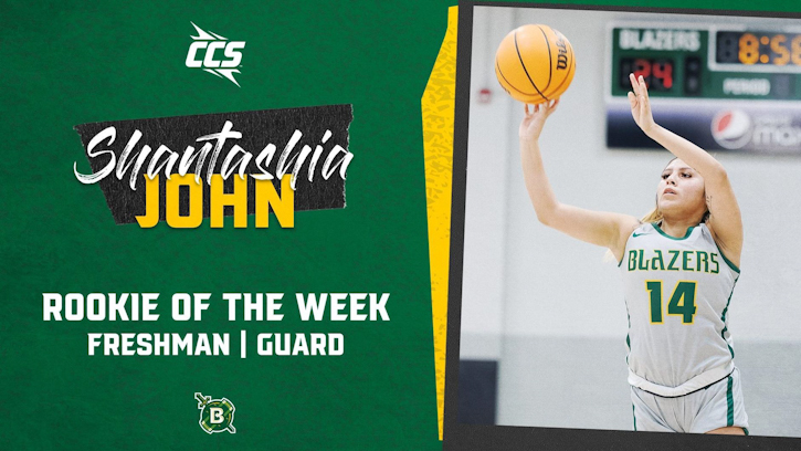 Atlanta, Ga. – Shantashia John (MBCI) was tabbed CCS Rookie of the Week for the sixth time this season on Monday. The freshman sensation continues to shine in her first season for the Green and Gold, leading the Blazers to a 2-1 record over the past week.