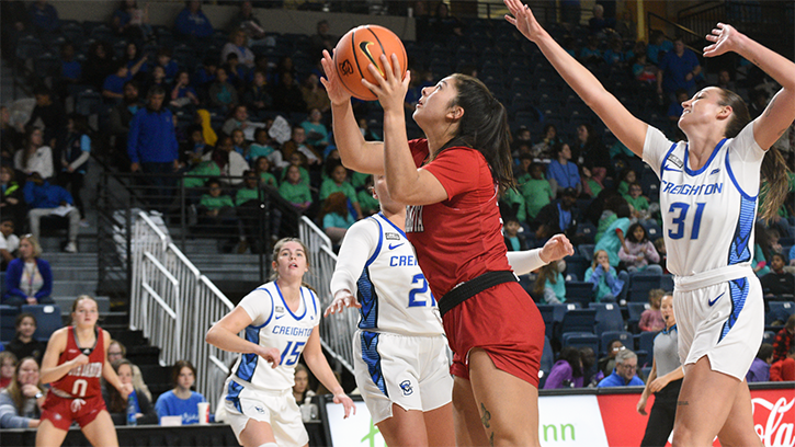 OMAHA, Neb.—Junior guard Grace Larkins scored her 1,000th career point as the Coyotes defeated Omaha 77-71 in overtime Sunday afternoon inside Baxter Arena.