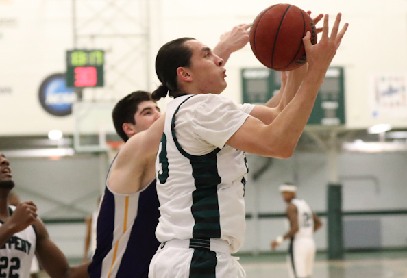 A 3-pointer on the next SRU possession from Vinny Lasley (Meskwaki Nation)sparked what would prove to be the decisive run of the game. The Rock pushed the lead back out to 10 points with a 9-1 run to make it 48-38 with 5:57 to play.