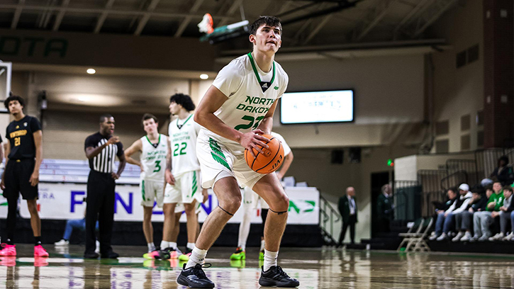 GRAND FORKS, N.D. – Garrett Anderson’s go-ahead three-pointer with 17 seconds left in overtime, led the North Dakota men’s basketball team to a 90-87 win over South Dakota State on Saturday afternoon from Betty Engelstad Sioux Center. UND improves to 8-10 overall and 2-0 in Summit League play, while the Jackrabbits drop to 8-9 overall and 1-1 in the conference.